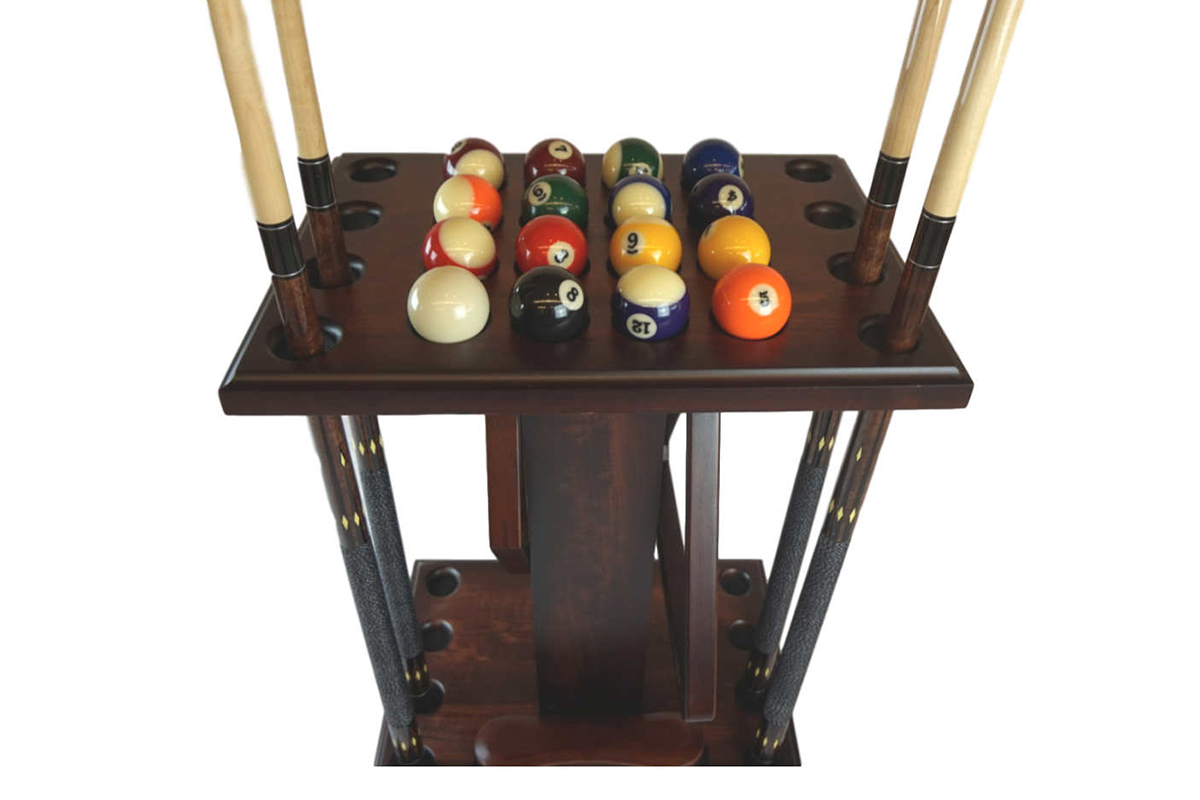 A cue rack or holder provides a convenient place to store and display your cues when they’re not in use, helping to protect them from damage. These can be wall racks that are wall mounted, or floor racks. They can add a touch of elegance to your game room. You can purchase high quality pool cue racks built to match your American Made pool table.