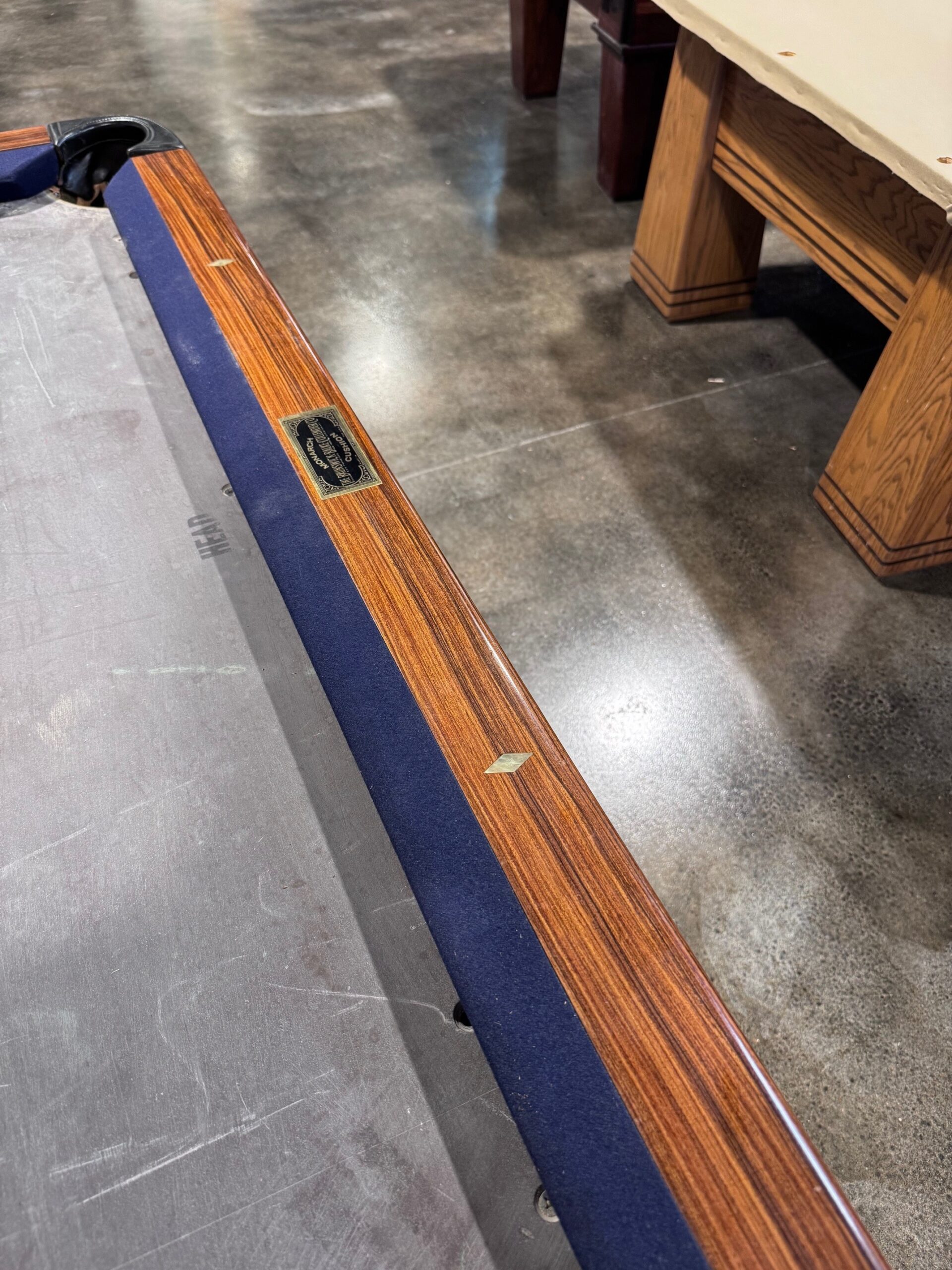 This beautiful 9-foot Brunswick St. Bernard Mission pool table was restored by us in 1986 and remains in excellent playing condition.